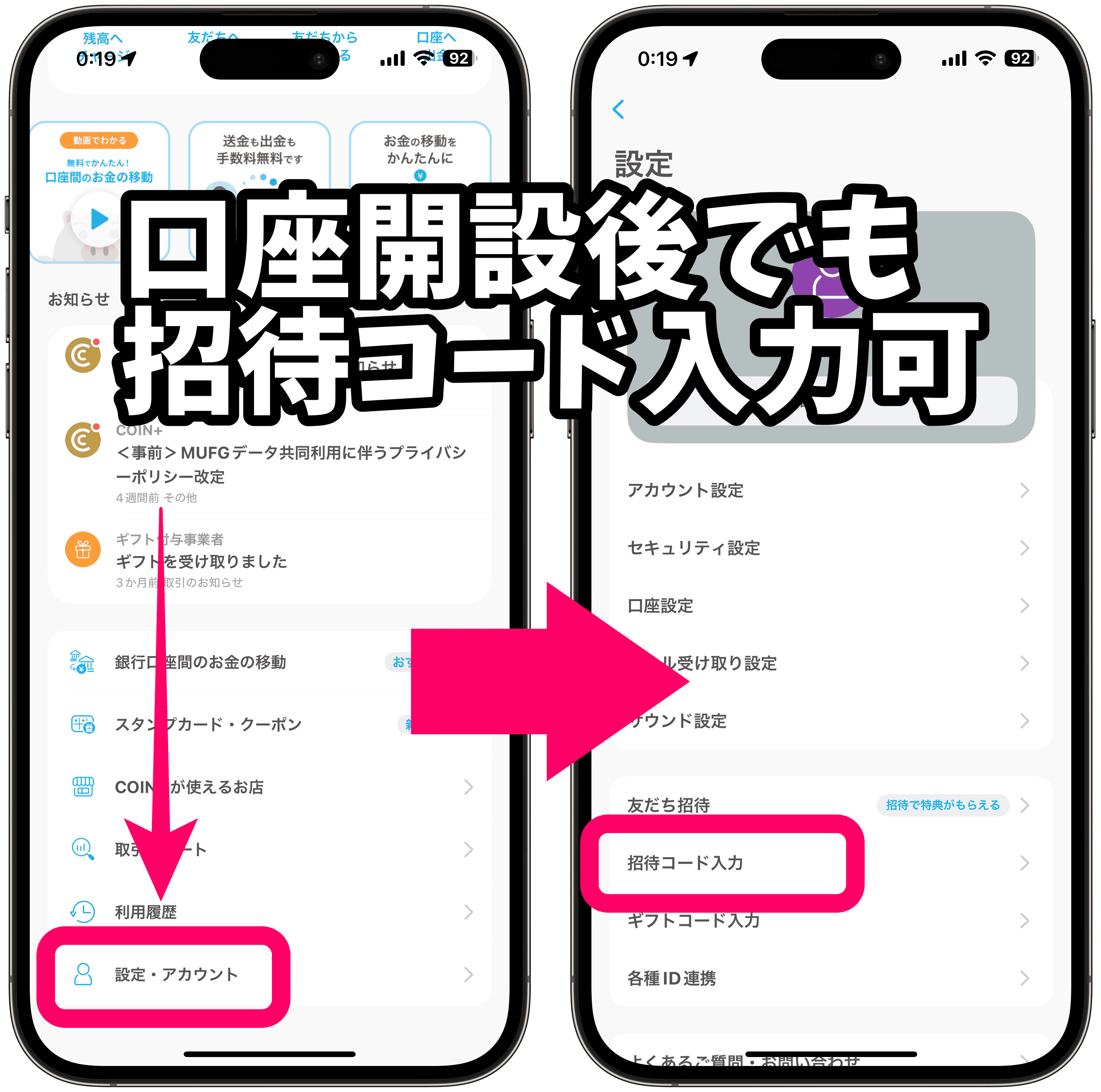 さらに、招待コードは登録後でも「招待コード入力」画面から後から適用できる仕組みになっています。入力を忘れても焦らず対応できます。